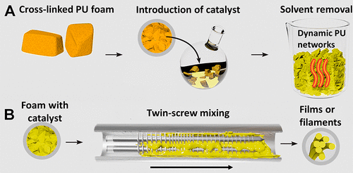 為了擴(kuò)大回收利用的可能性,來自明尼蘇達(dá)大學(xué)和伊利諾斯州西北大學(xué)的科學(xué)家們設(shè)計(jì)了一種工藝,他們首先將聚氨酯泡沫廢料跟催化劑溶液混合,這使得泡沫具有延展性。