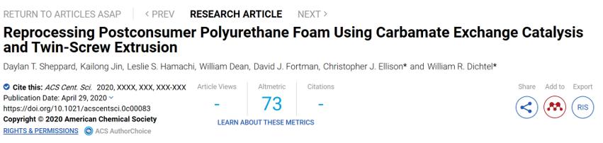 在本篇文章中,研究人員成功證明了通過引入DBTDL為催化劑來使PU熱固性塑料進行再加工處理,使用工業(yè)上的雙螺桿擠出技術(shù)有效地從PU泡沫中除去空氣,從而對PU泡沫進行再加工,并證明了這種再處理方法對市售PU泡沫的適用性。我們相信,這項技術(shù)不僅能夠?qū)⒏鞣NPU廢料回收再處理成高價值的材料,為工業(yè)界對PU泡沫廢料的回收利用鋪平了道路,而且將極大地激發(fā)其他市售工業(yè)材料的回收利用!