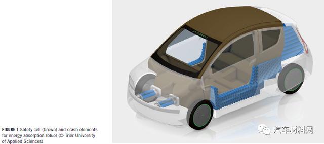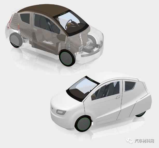 德國(guó)特里爾應(yīng)用科技大學(xué)(TheTrier University of Applied Sciences)的一個(gè)研發(fā)團(tuán)隊(duì)針對(duì)當(dāng)?shù)氐慕煌顩r(theproTRon Evolution),開(kāi)發(fā)了一款高能效電動(dòng)汽車。該車的結(jié)構(gòu)件和外覆蓋件由天然纖維增強(qiáng)復(fù)合材料(NFRP,NaturalFiber ReinforcedPlastic)制成。雖然亞麻纖維增強(qiáng)復(fù)合材料的強(qiáng)度有限,一般用于低負(fù)載部件,但通過(guò)優(yōu)化的結(jié)構(gòu)設(shè)計(jì),該車輛仍滿足了歐洲M1道路的碰撞安全要求。