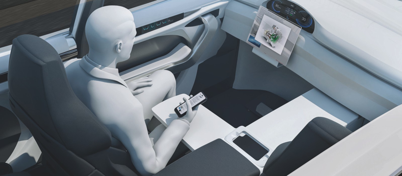 當駕駛員辦公時,汽車座椅需要轉(zhuǎn)換為辦公椅,可以延展出小桌板,并且有足夠的置物空間。